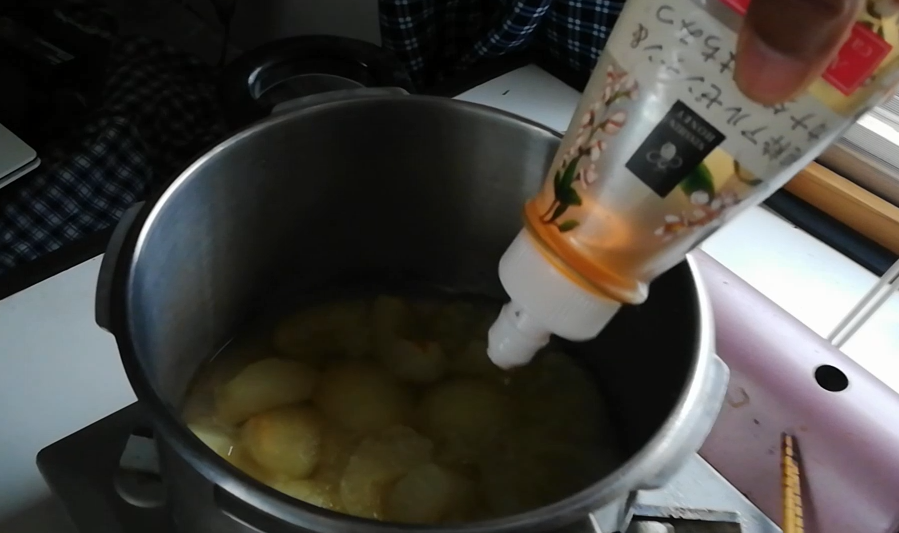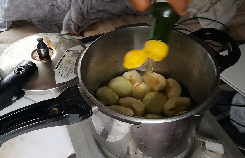 レシピでは20分ほど煮ると書いてあるのですが、圧力鍋を使います。