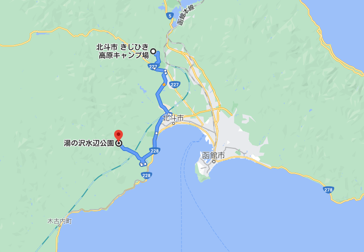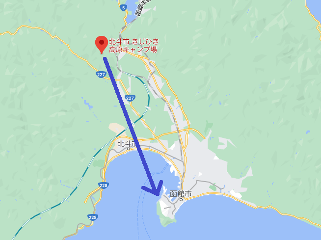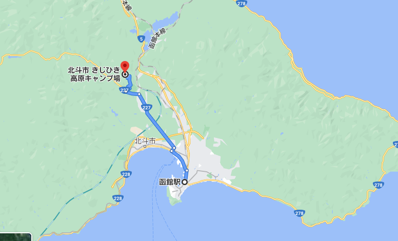 函館市の中心部からは車で30-40分のところにある標高400mほどの高原にあるキャンプ場です。