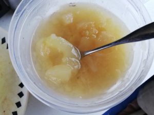 果物を水や薄い砂糖水で煮て作る、ヨーロッパの伝統的な果物の保存方法だそうです。(Wikipedia より)