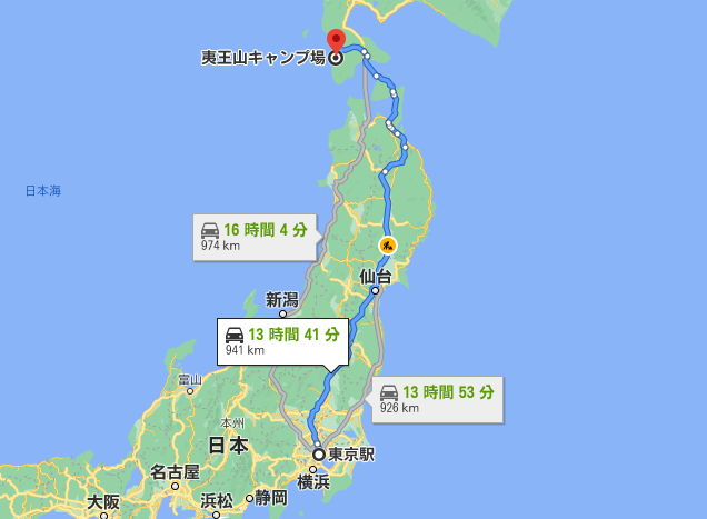 例えば、東京を夏至近くの土曜の朝5時に出発すれば、その日の夕方に日本海に沈む夕日を眺めながらキャンプができ、