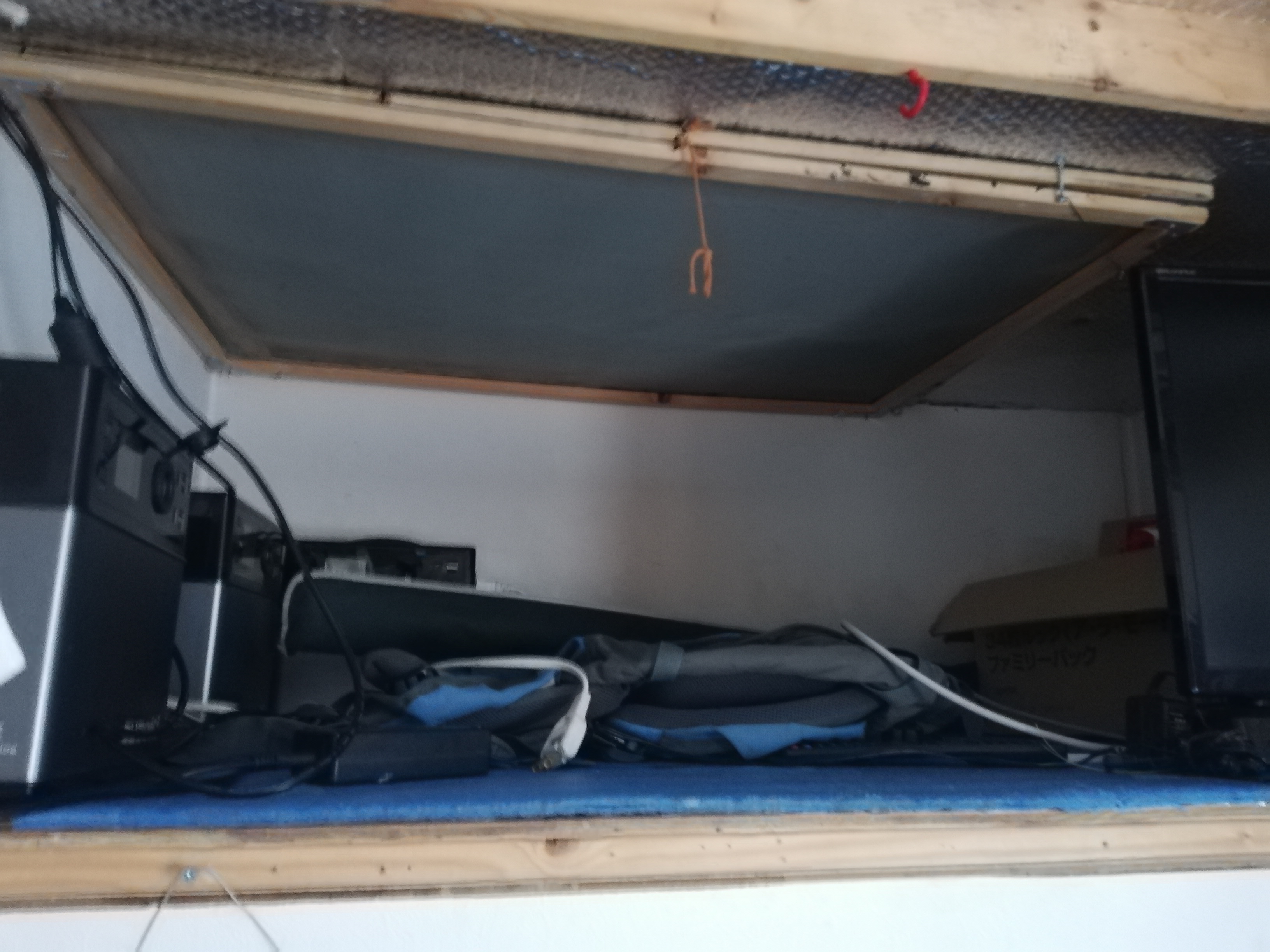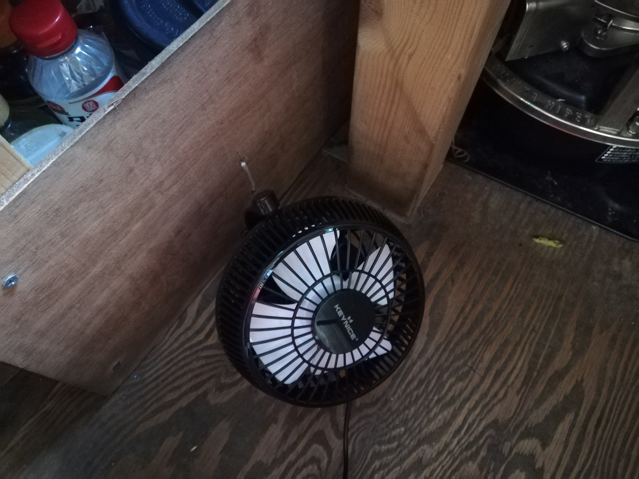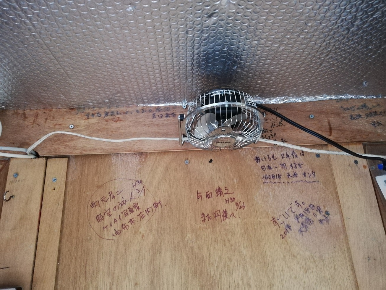 そして、暖気が下にも来るように天井に小型扇風機を取り付け