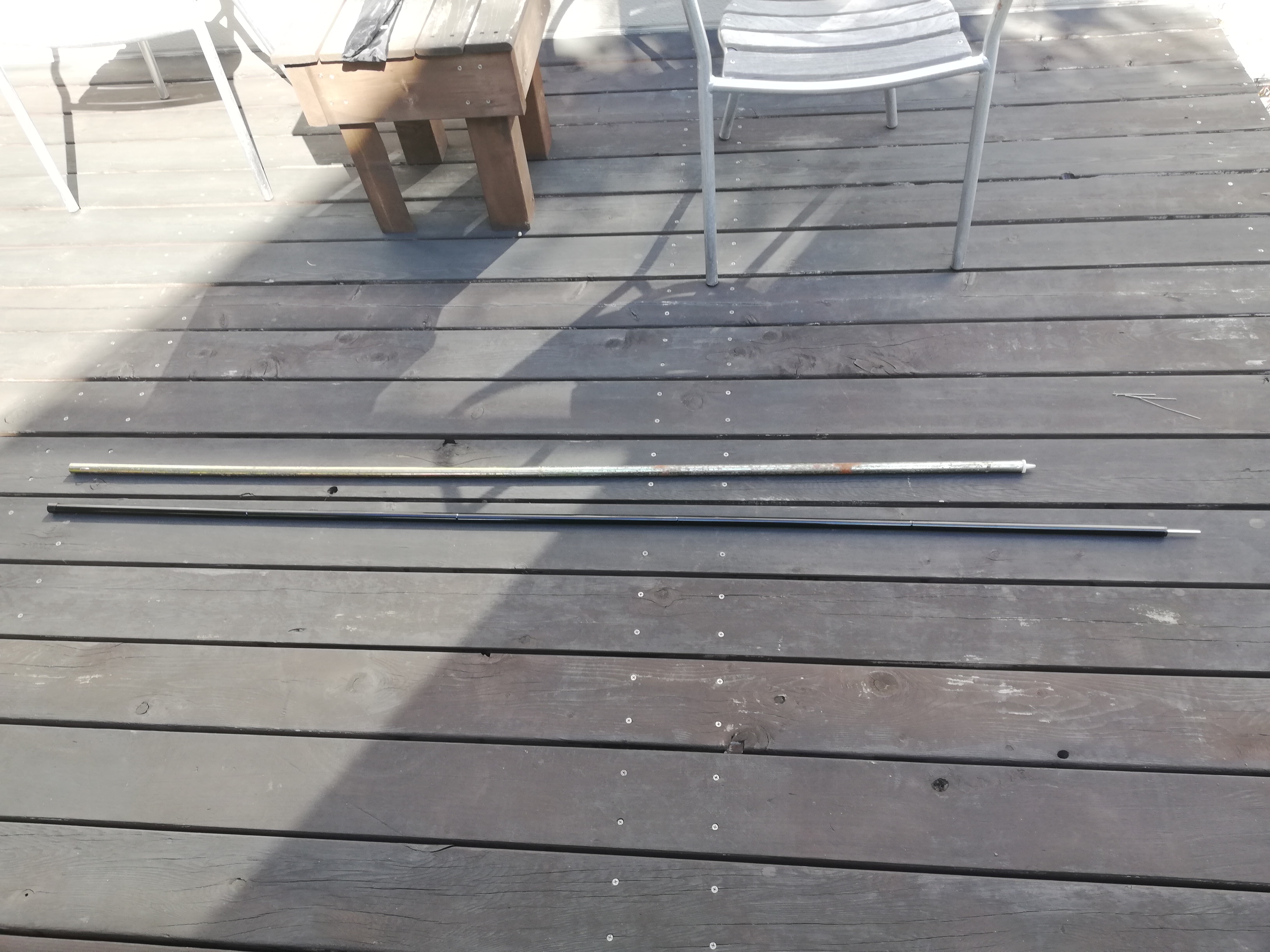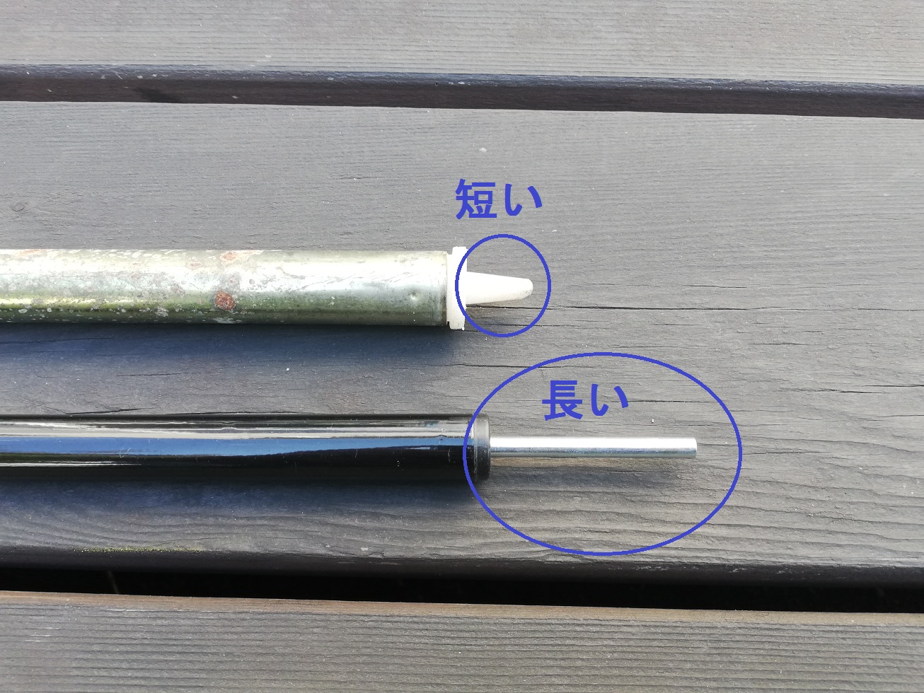 ↑上がソロキャンプの旅で使用していたもの。下が新しいポール。
