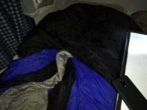 真冬の北海道の旅以来、久々の冬用シュラフの中に入ります。