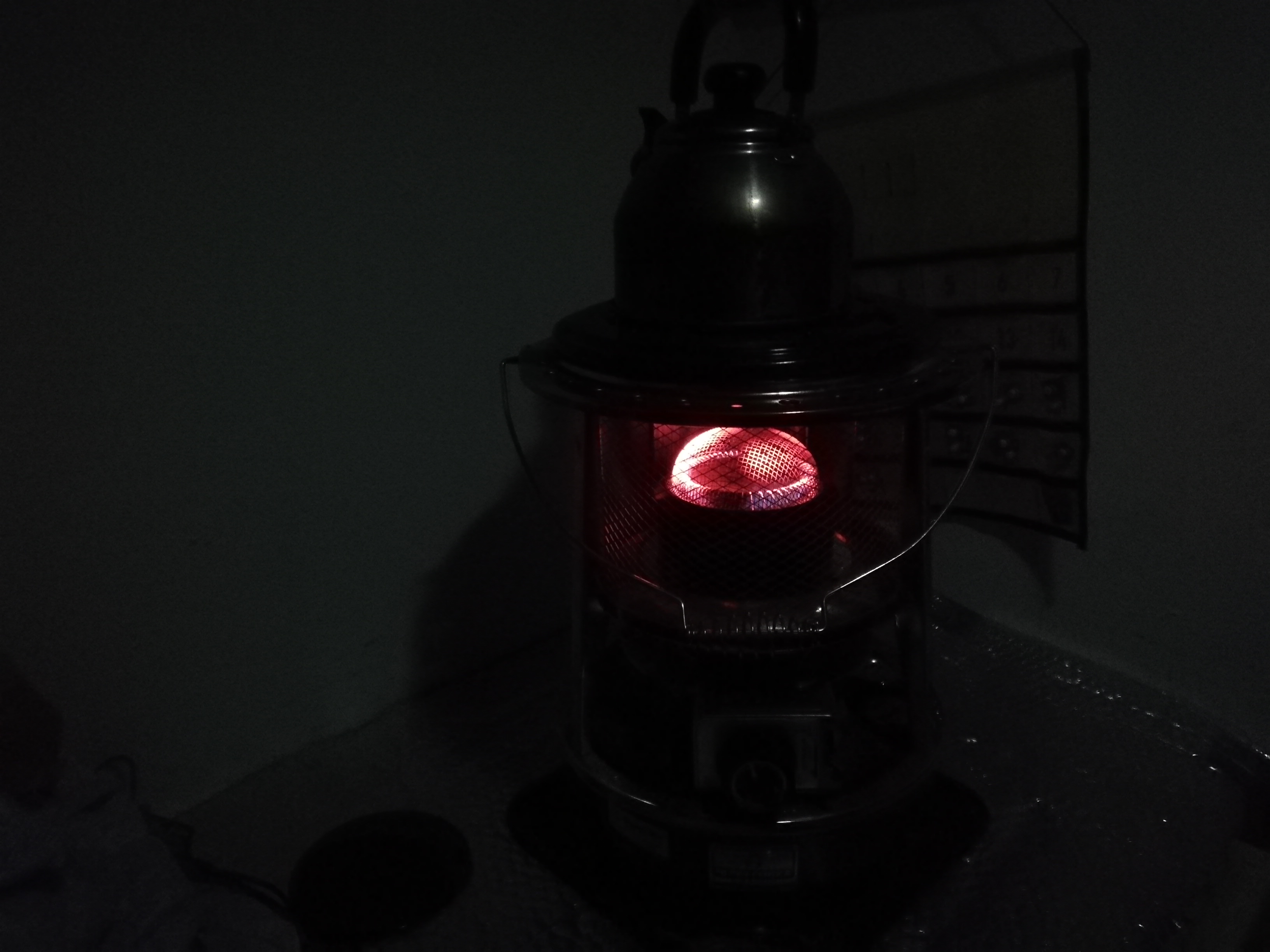 ストーブをつけるには微妙な室温ですが…椅子の下からハイペットを取り出し、