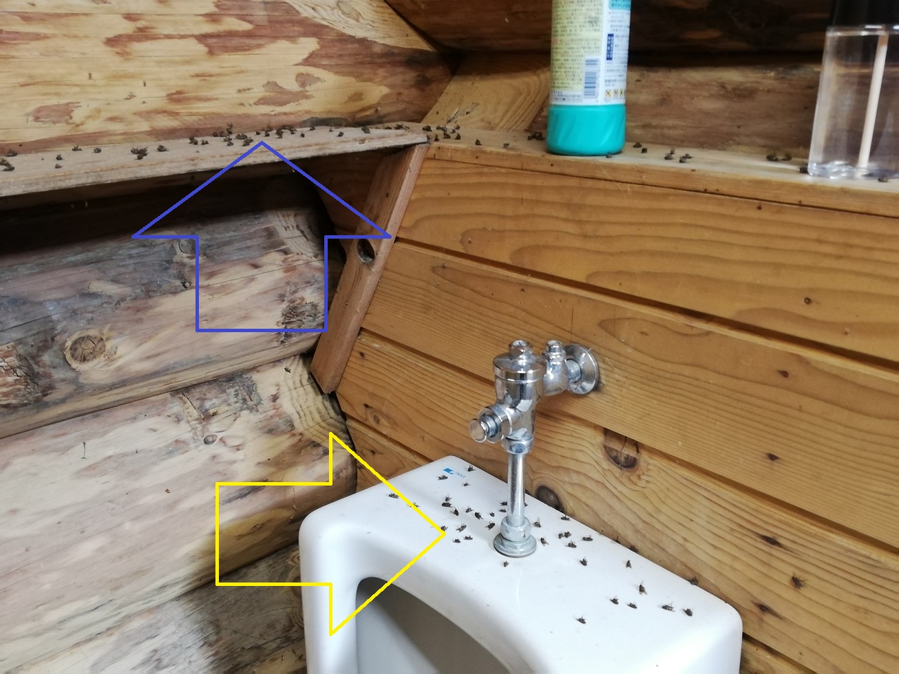 ハエ嫌いの方は天井だけ見て用を足した方がいいかと思います。