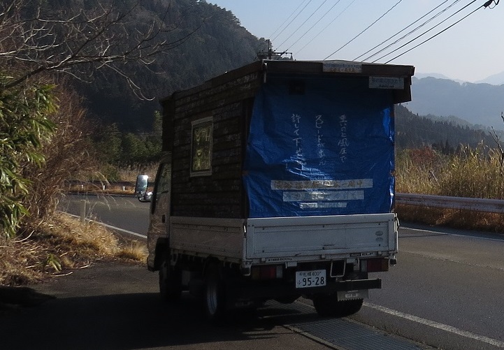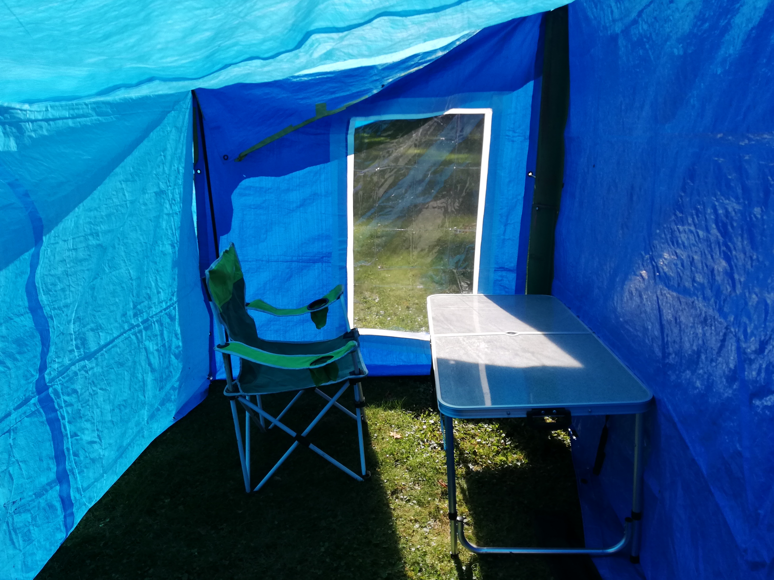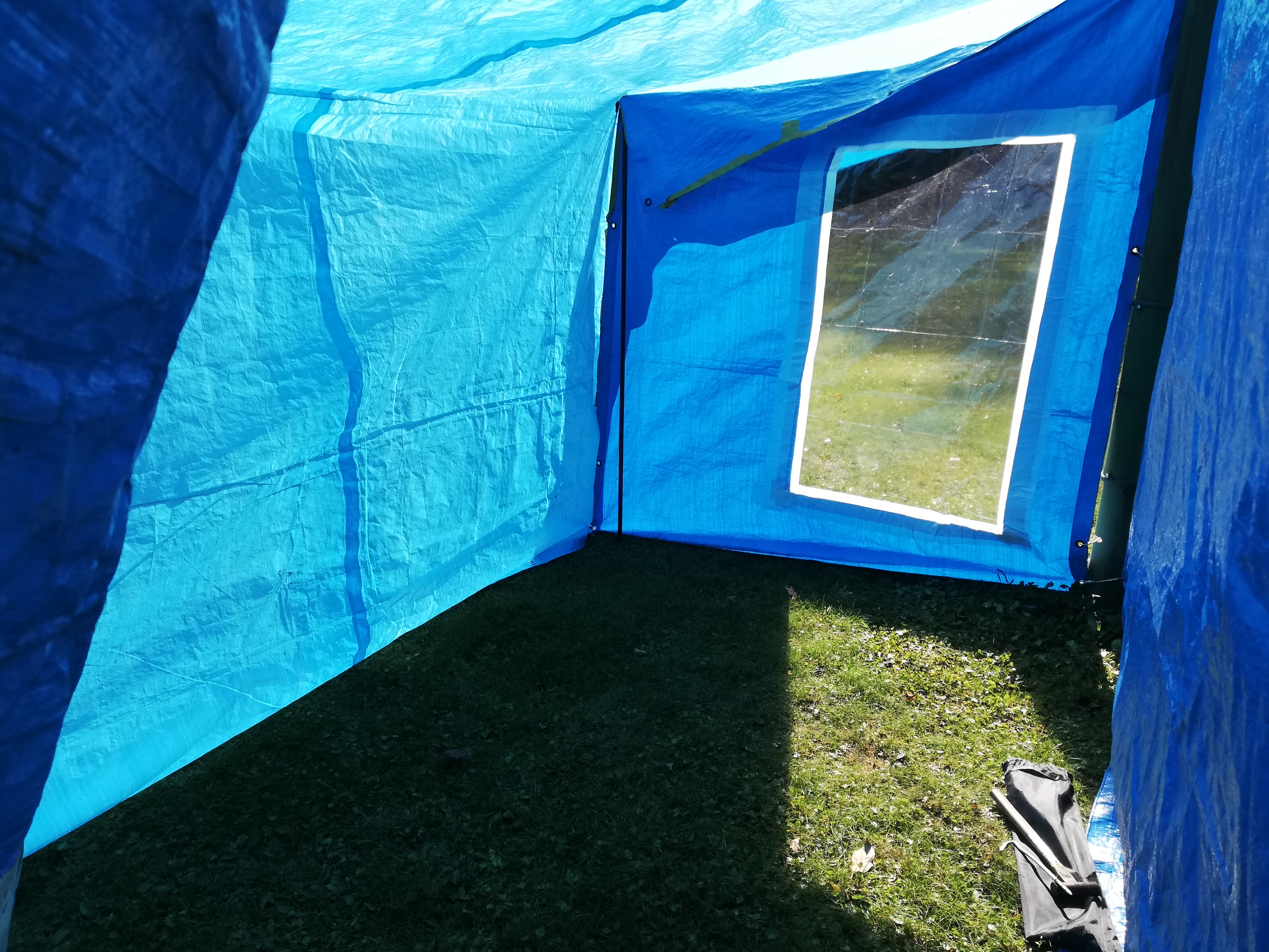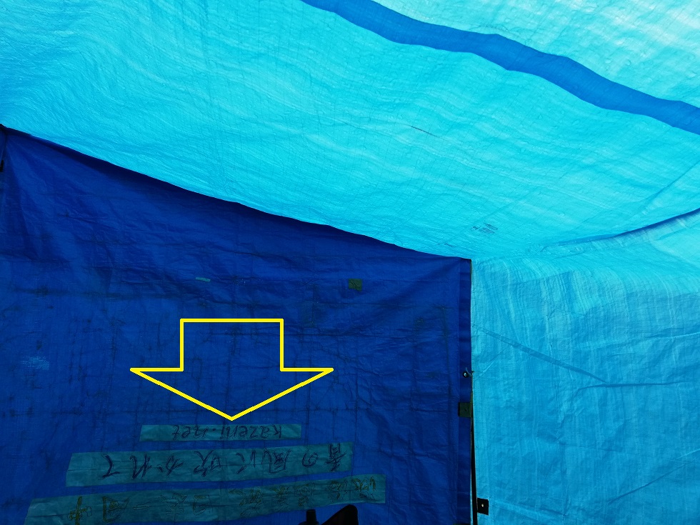 まだバックドアをつけていない青の1号時代に、混浴温泉の旅でドア代わりに張っていたブルーシートです。