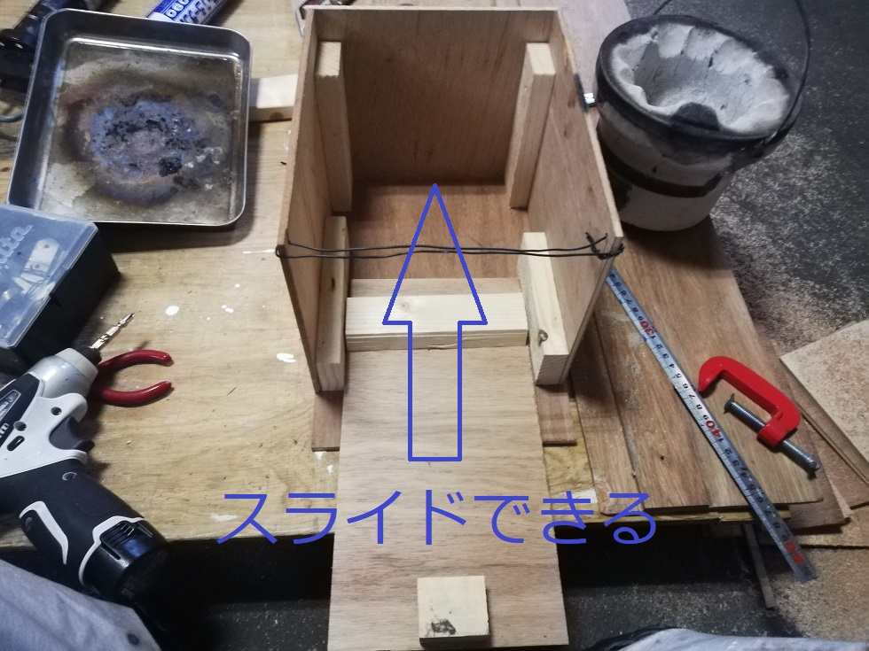 手前の台の上に七輪を乗せてスライドできるようにしてあります。