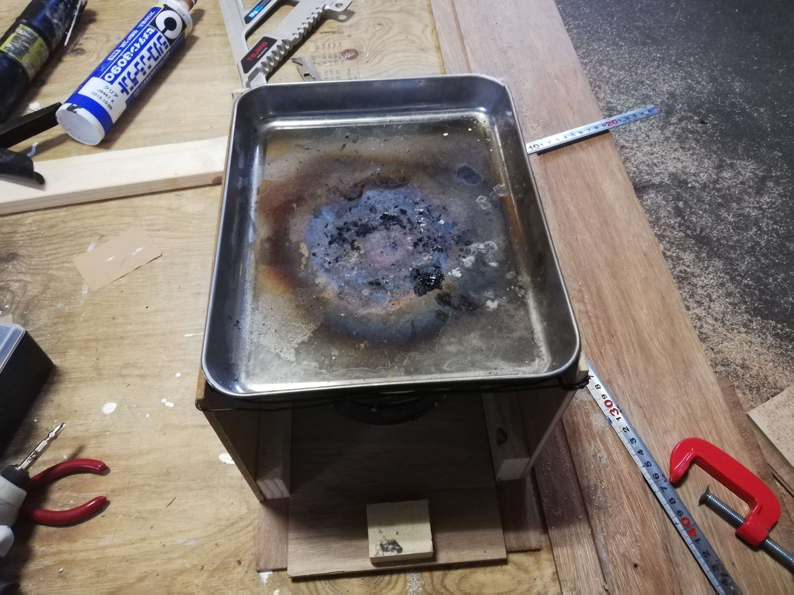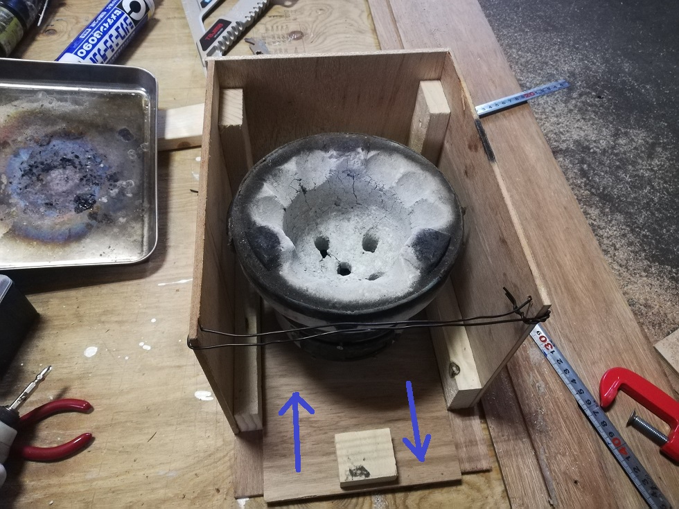 ステンレスのトレイから上は単に七輪の上に乗せているだけなので安定性が非常に悪いのです。