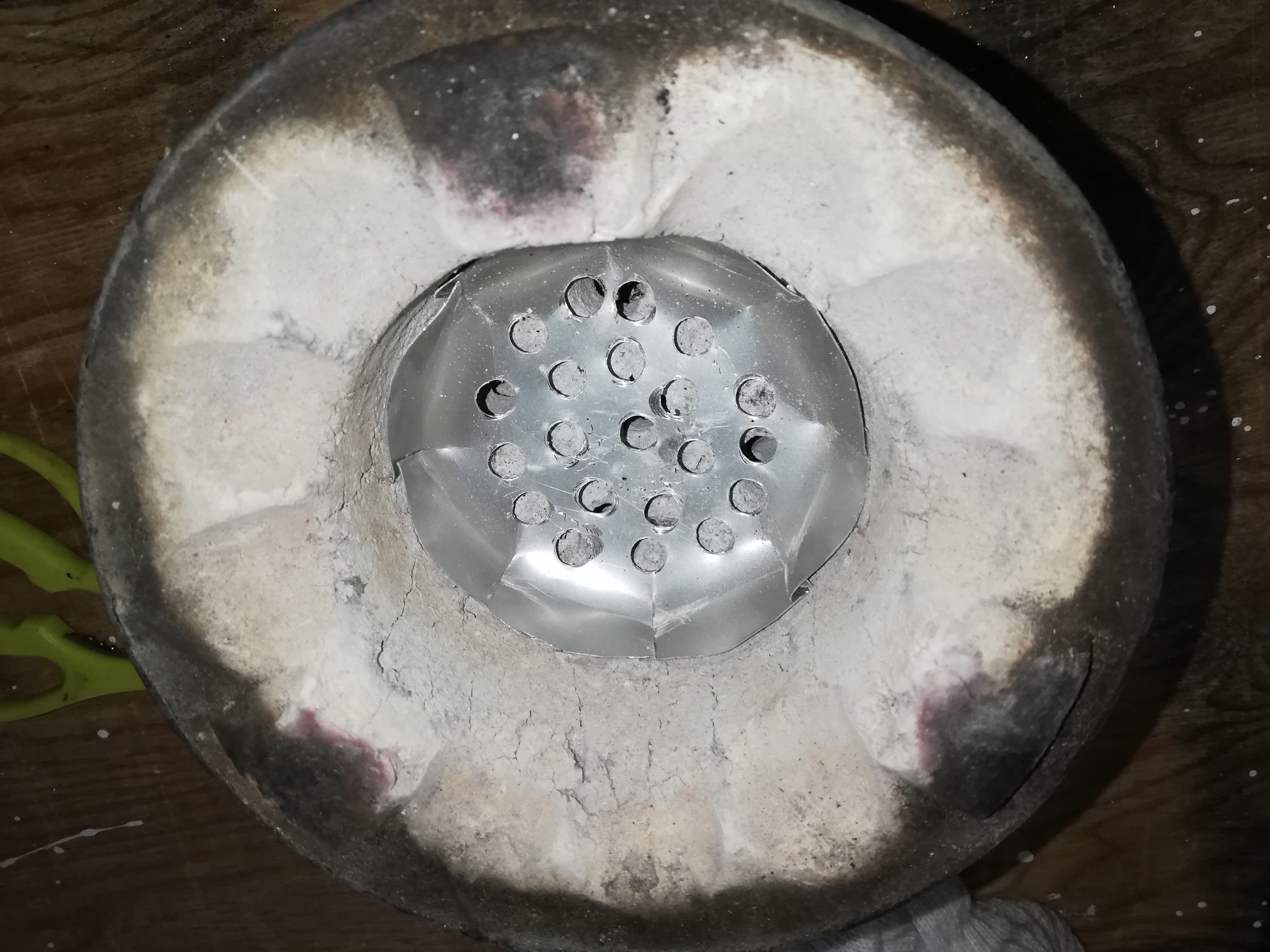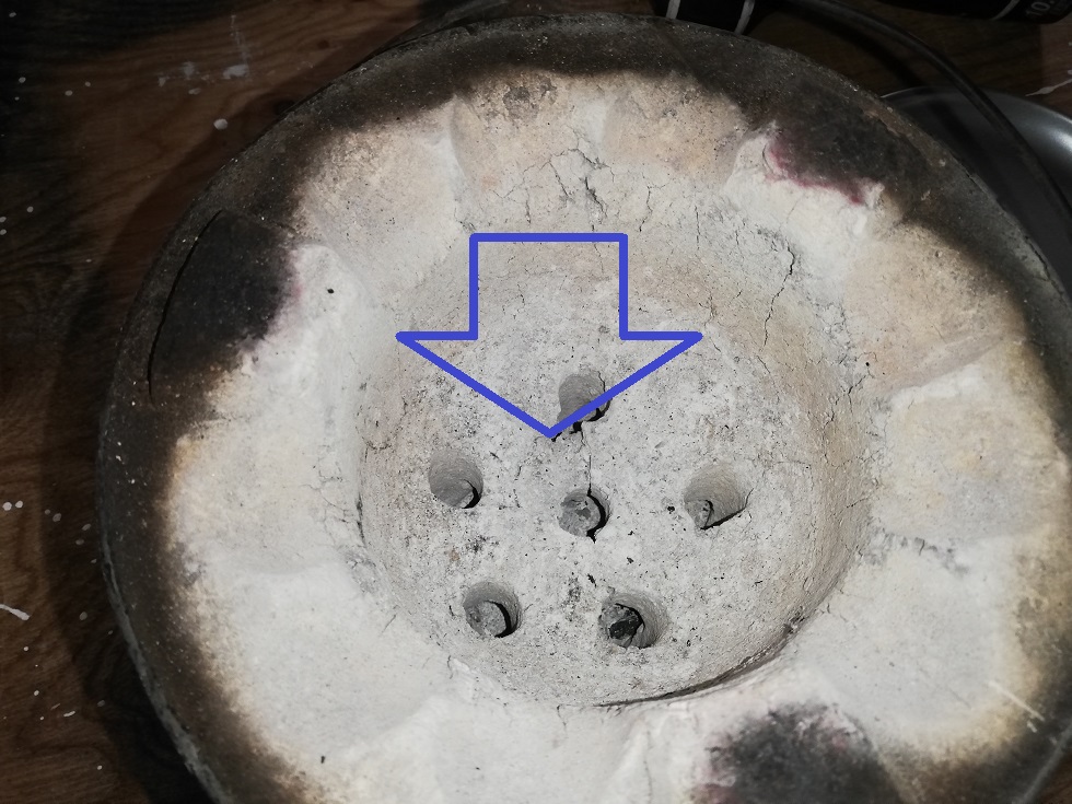 七輪の底がひび割れてます。