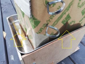やがて脂分が流れてきて、段ボールにも沁みてきました。