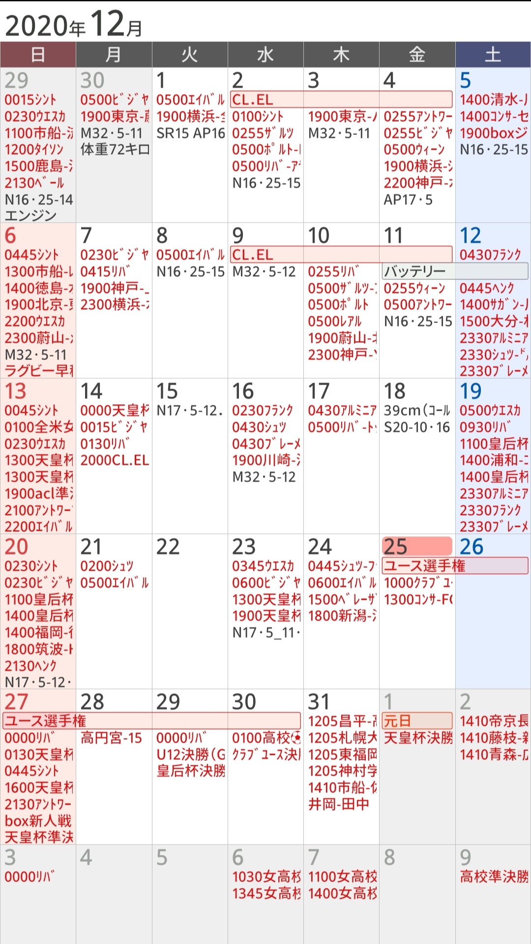 赤字はそのほとんどがサッカーのゲームスケジュールです。