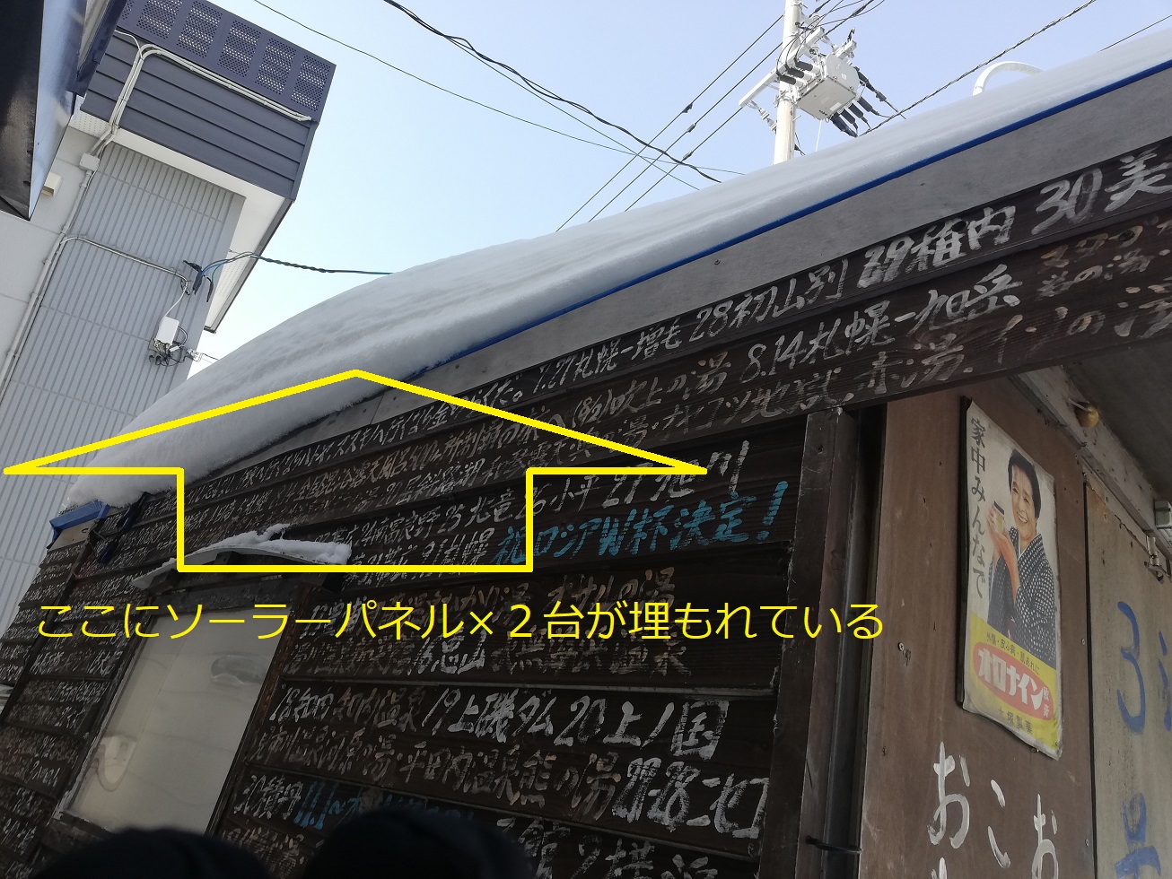 屋根に雪が積もってるし。