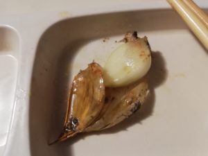 と、にんにくを掴んで入れ、