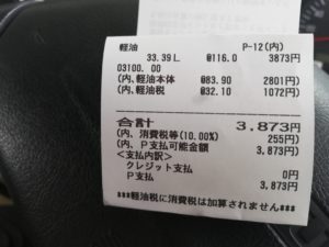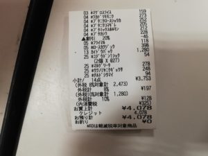 支出:3,873円(軽油)+4,078円(スーパー)+790円(風呂)=8,741円