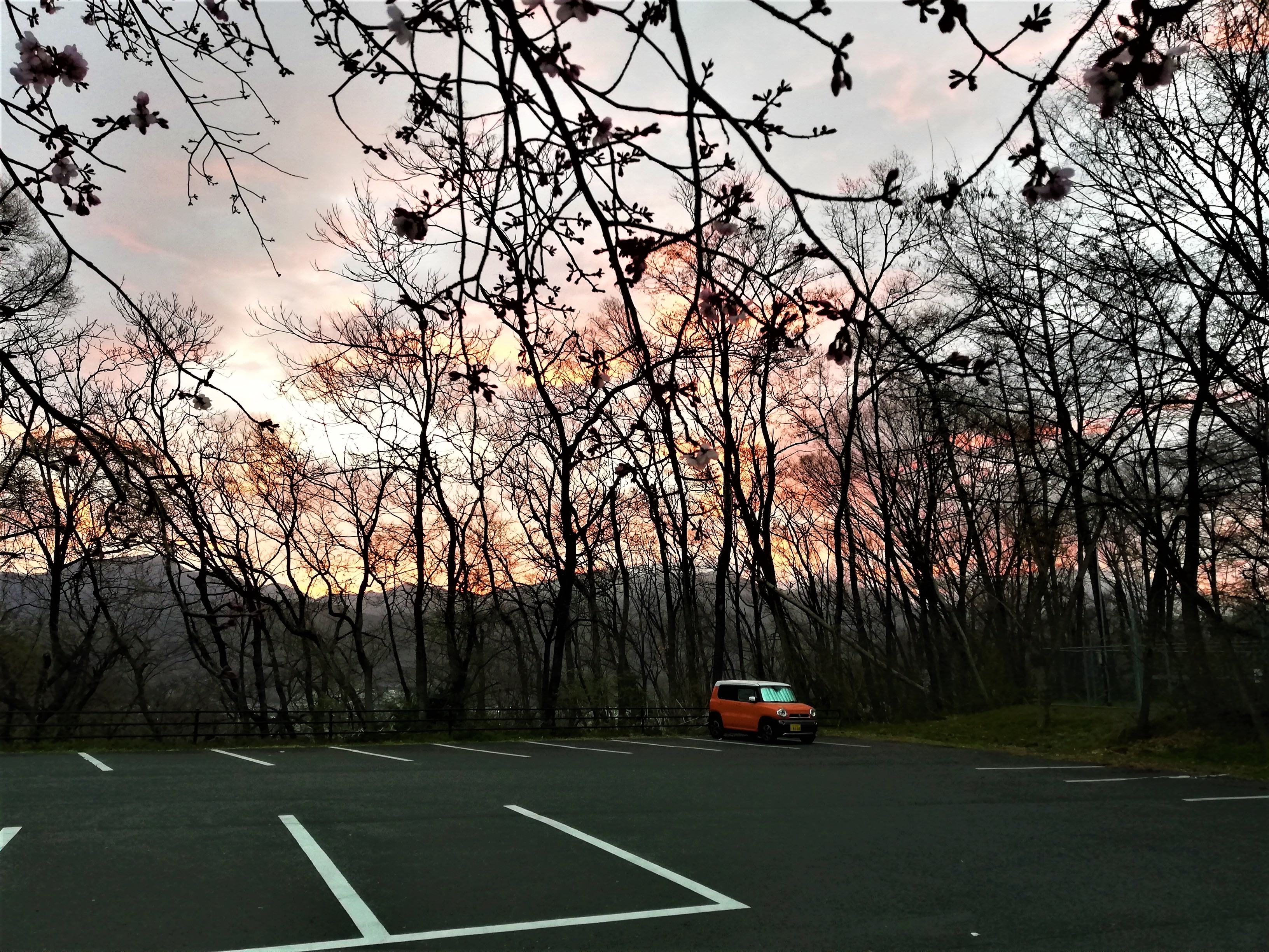 外に出てみると、窓をシートで目張りした車中泊らしい車が一台停まっています。