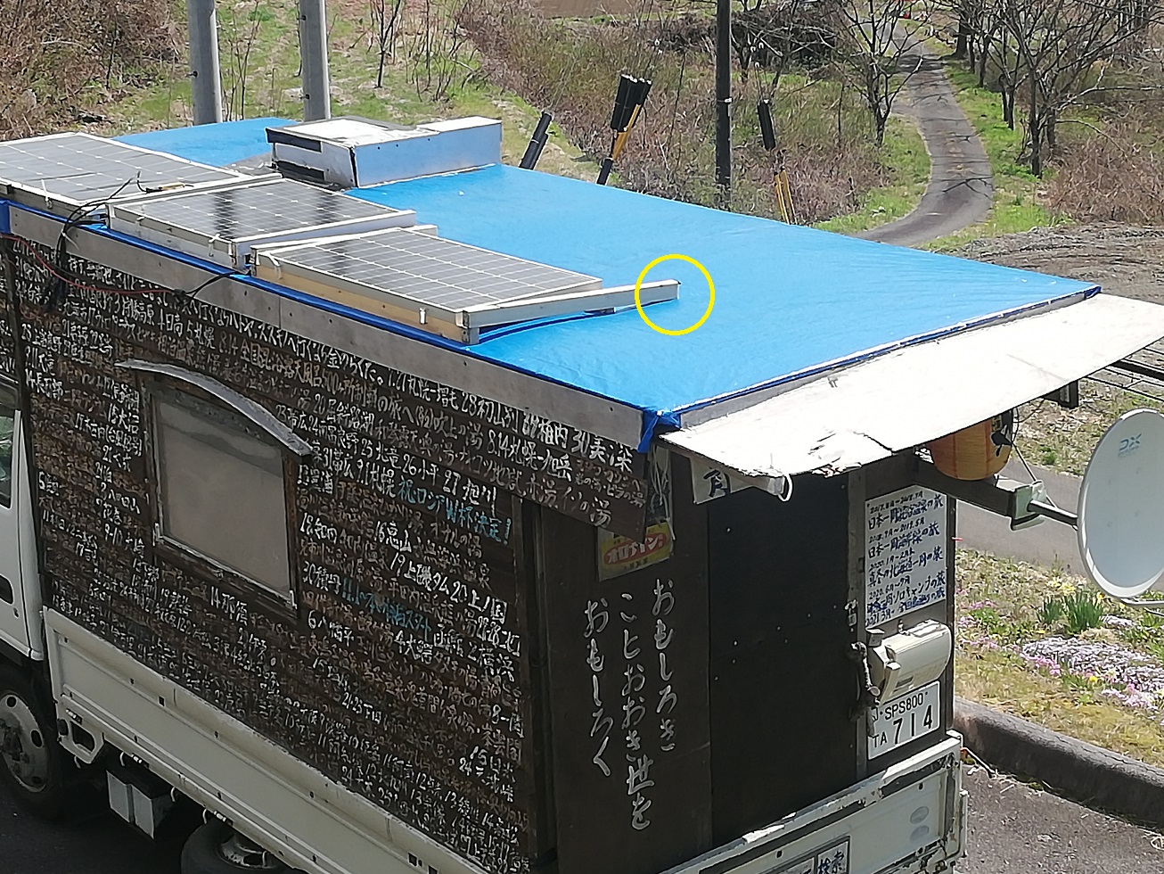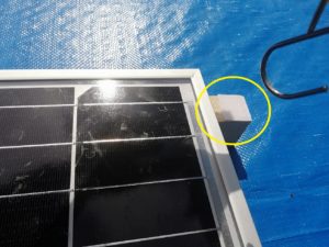 先日取り付けたソーラーパネルのつっかえ棒の先端がずれて屋根に当たっています。