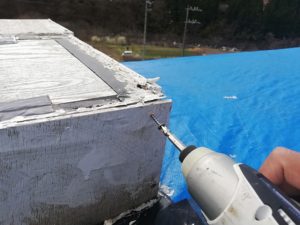 屋根に上って、接点にマジックテープを貼ります。