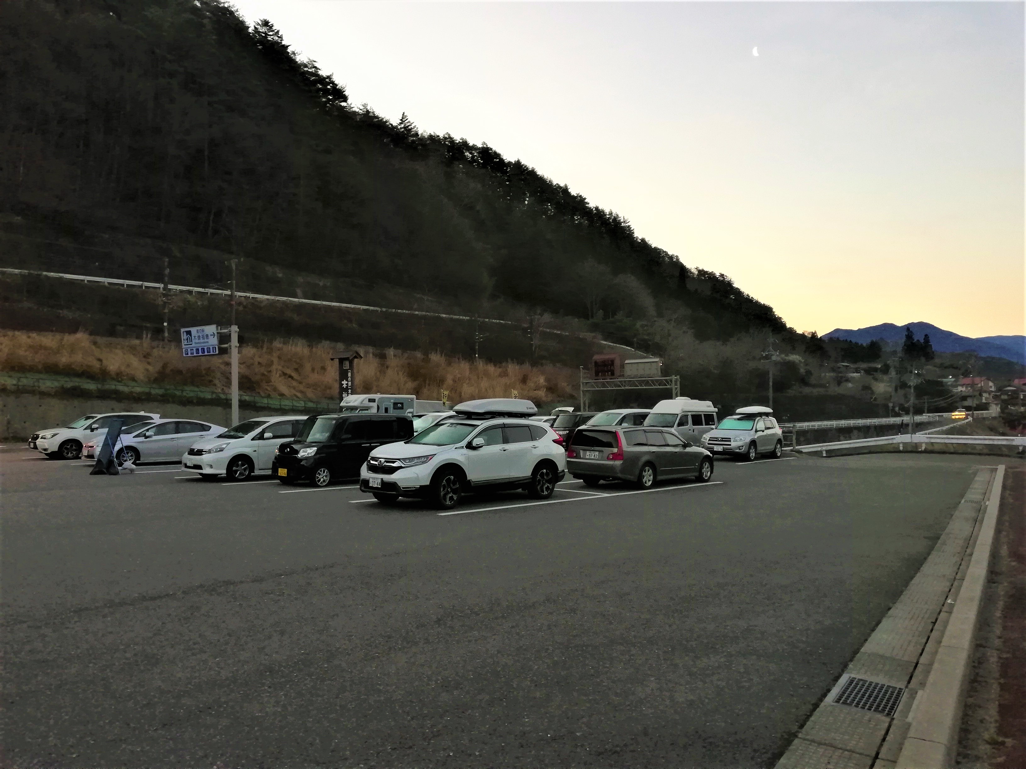 本駐車場に行ってみるとかなりの車中泊らしき車が停まってます。