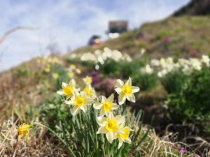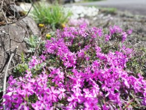 遅い太陽が顔を出すと、待ちかねたように周りに咲く小さな花たちが輝き出します。