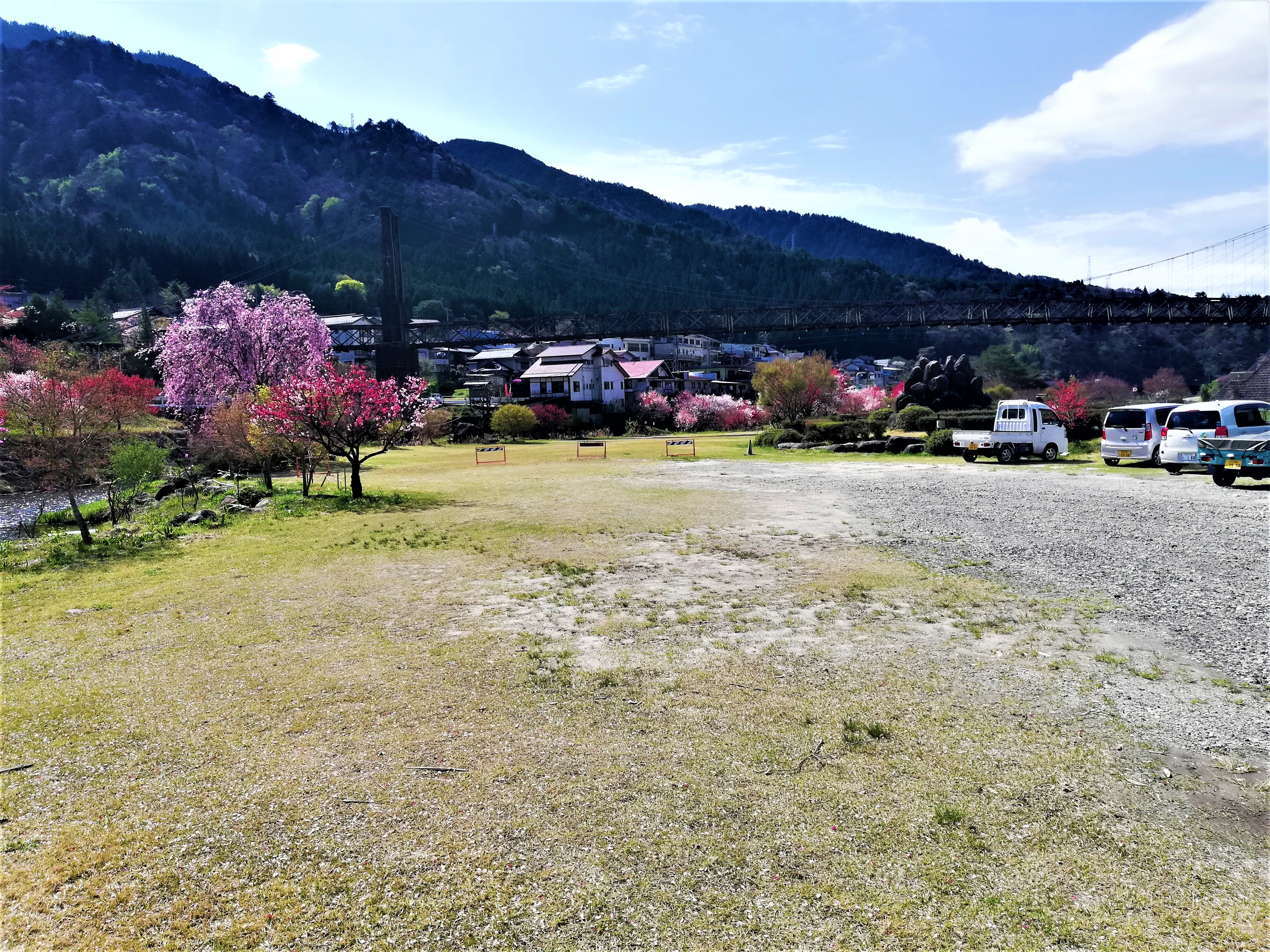 国道を走ると、桃介橋河川公園に到着です。