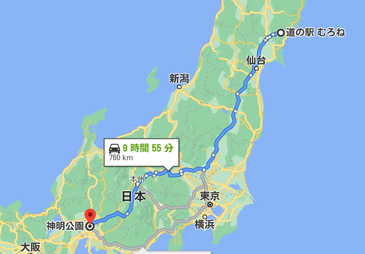 いや、空を飛んできたはずだから500㎞くらいでしょうか。