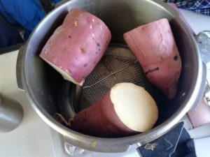 朝の間食用にさつまいもを圧力鍋で調理します。