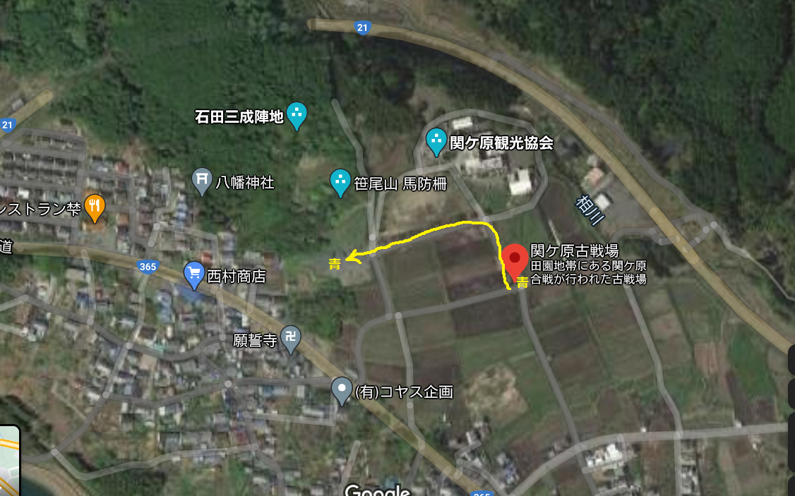 ここから歩いて三成陣地の小高い丘に上っていくと、