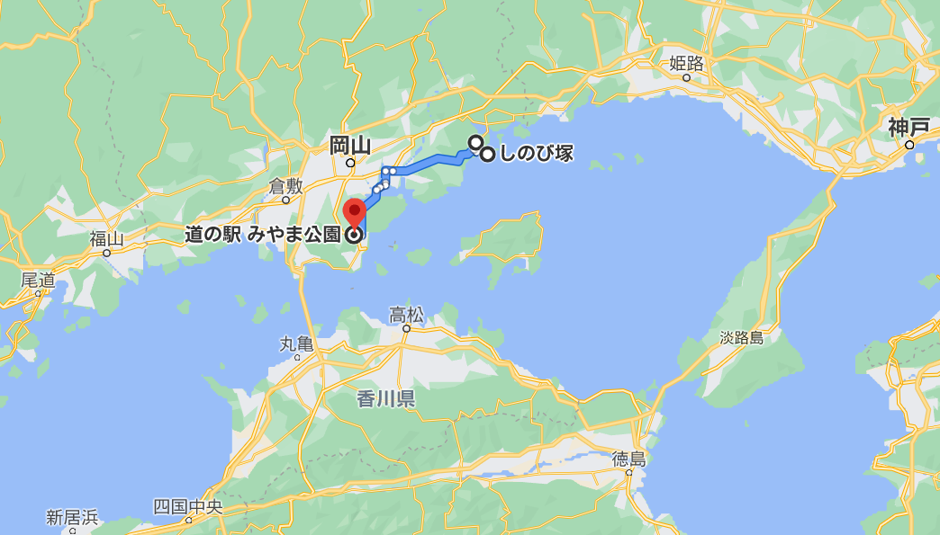 グーグルMAPを見ると、今渡ってきた邑久長島大橋には