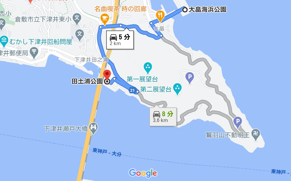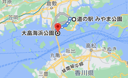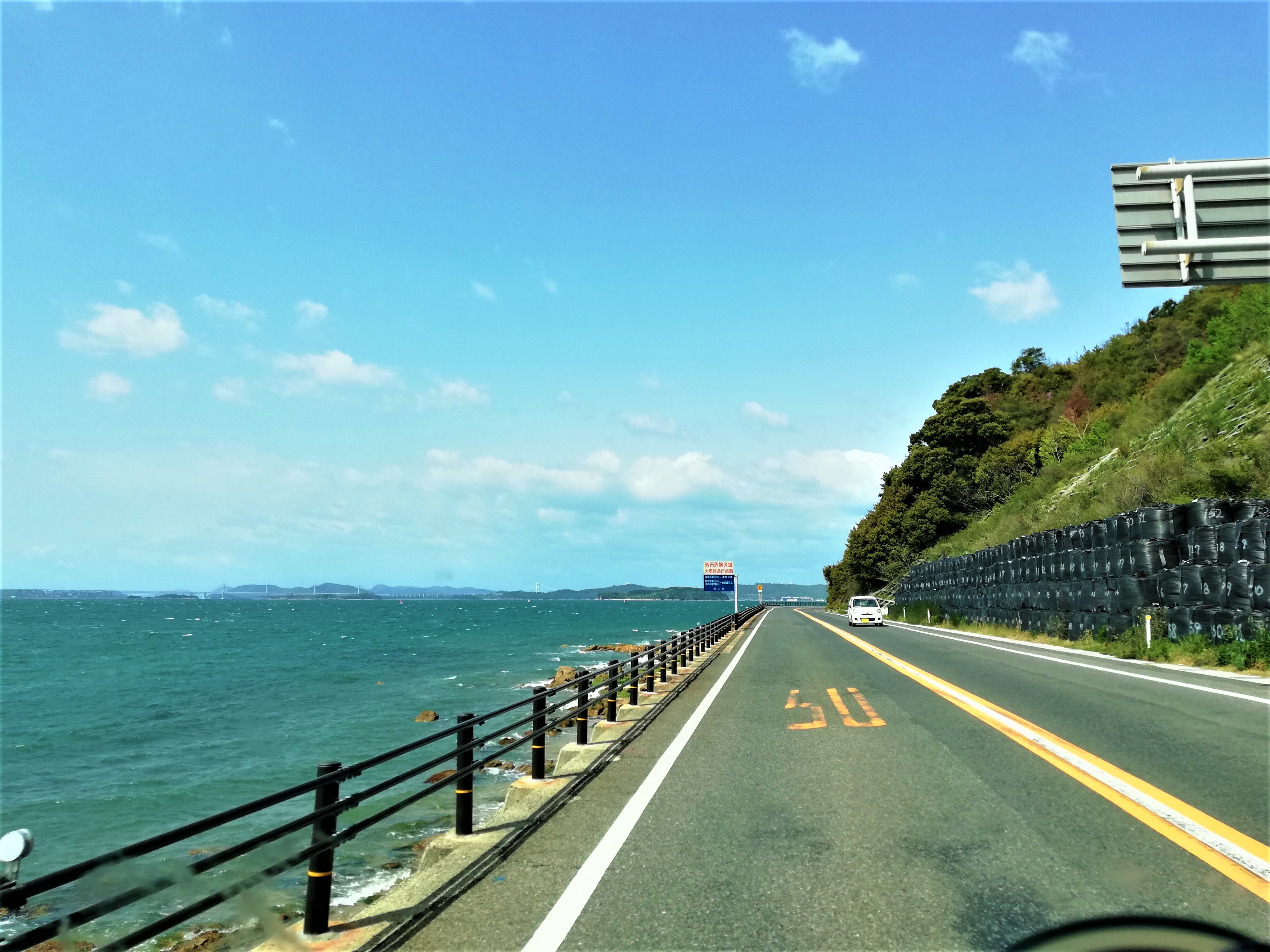 おお、遥か海上の彼方に瀬戸大橋が見えます。