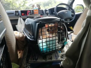 怪我をしていたので拾って育てているというネコも乗ってます。