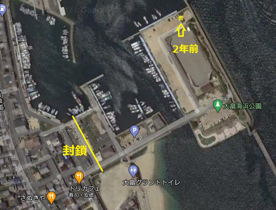 今日の目的地は、海岸線の旅で泊まった大畠海浜公園です。
