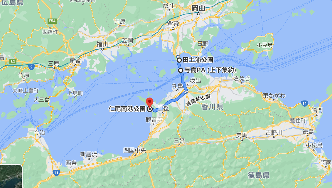 支出:1800円(瀬戸大橋)+440円(うどん)+600円(風呂)=2,840円