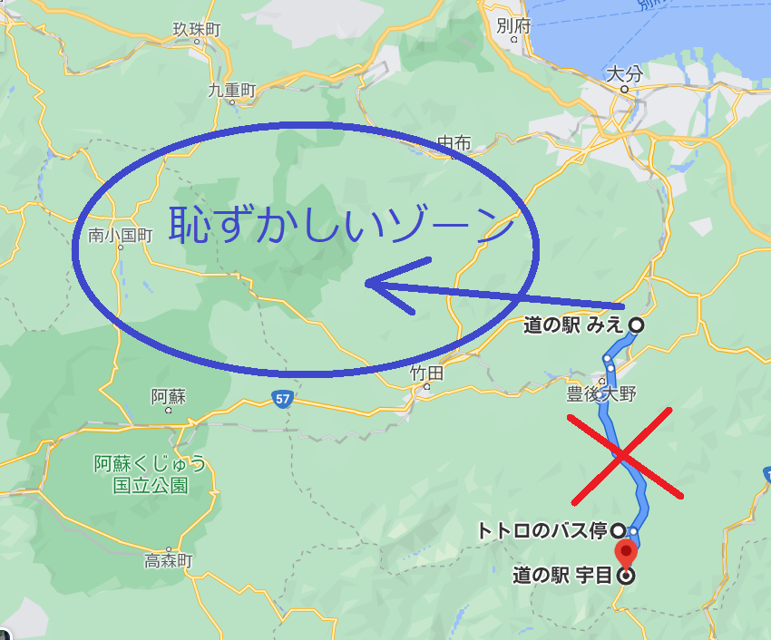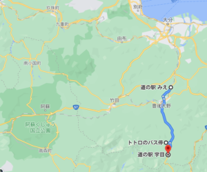 いうことで、わずか1時間前までは、南下して途中トトロのバス停に寄って道の駅宇目まで行くつもりだったのですが、