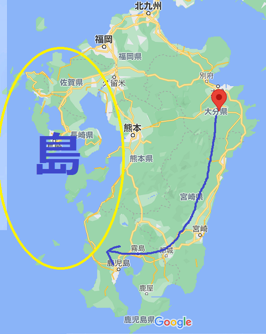 ターゲットにしている「島々」は九州の西側にあるのですが、直接行ってしまうとすぐにこの旅が終わってしまうので、あえて迂回をしながら来てるのですが
