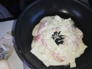 ほんとはこれにイカかエビを入れたかったのですがいいのがなかったのです