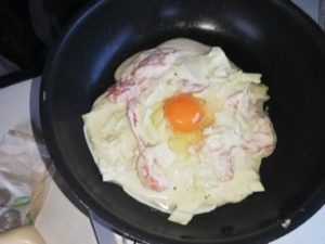 そして火口にタマゴをぽっちゃりと流し込み