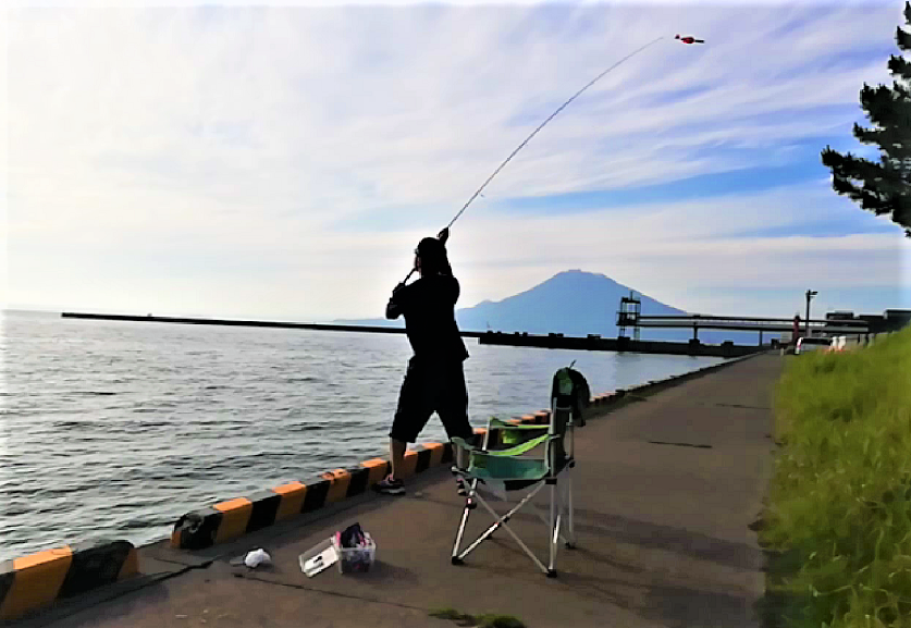 桜島を時折眺めながらのんびりと糸を垂らします。