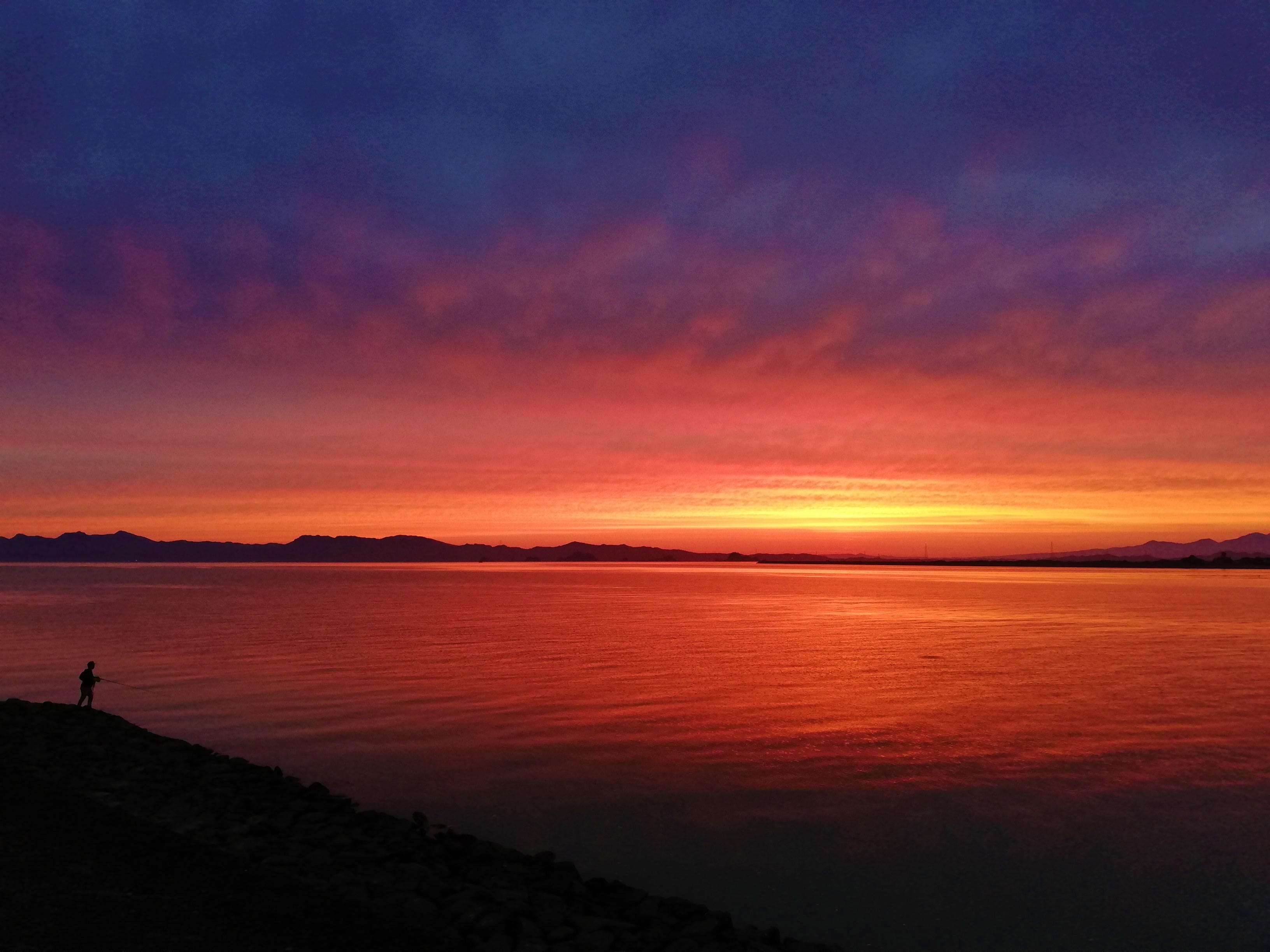 海辺まで行ってみると、日が沈んだ後の最後の輝きです。
