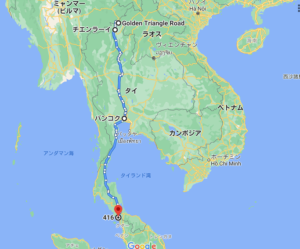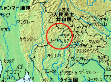 かつては世界最大の麻薬密造地帯で黄金の三角地帯(ゴールデン・トライアングル)と呼ばれていた、タイ、ミャンマー、ラオスの3国がメコン川で接する国境地帯にいたのです。