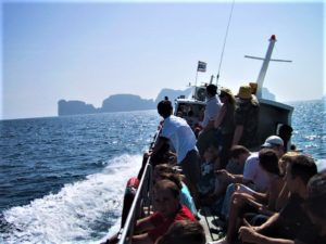 ↑傾いた船でピピ島を目指す。