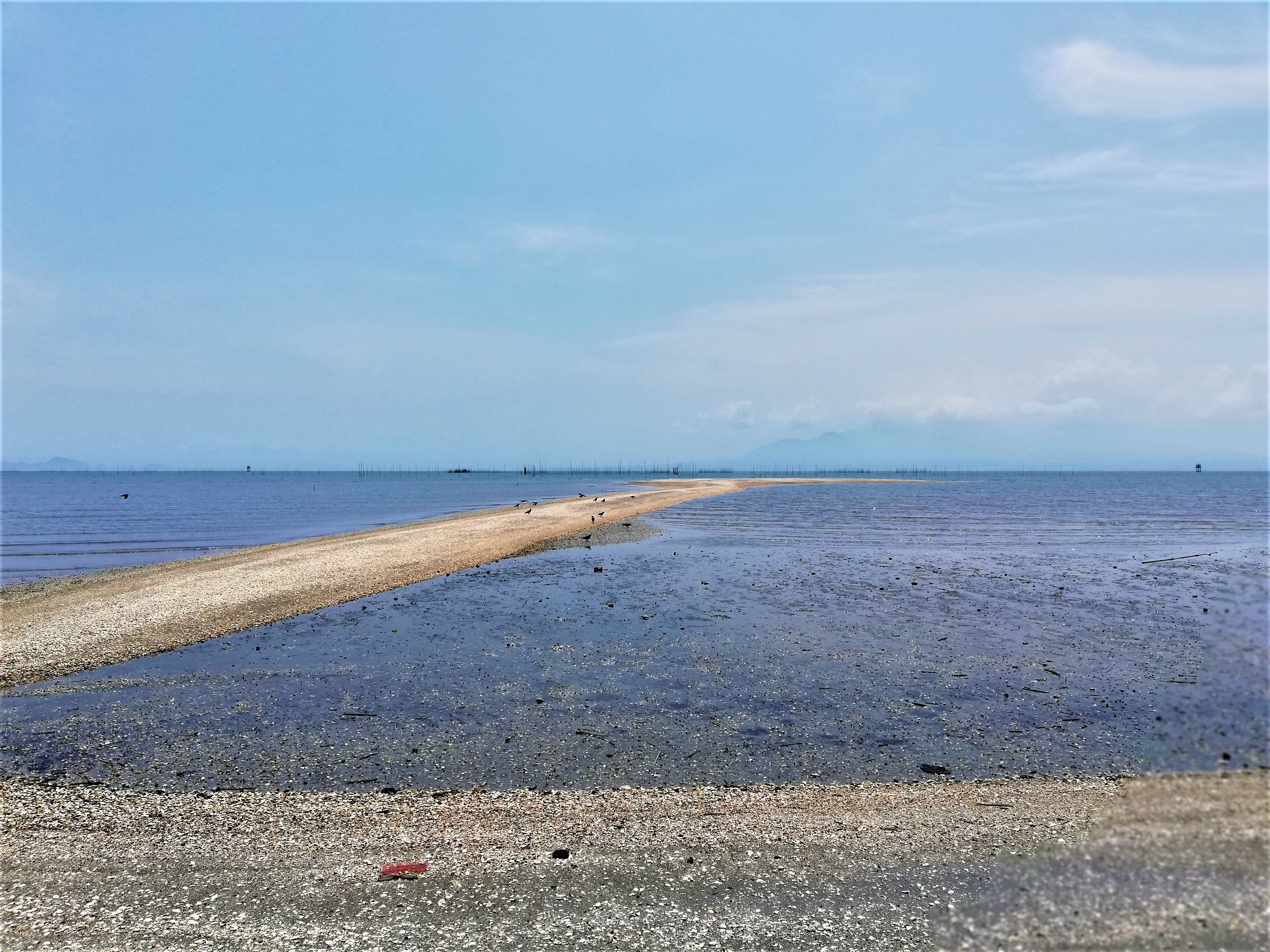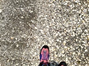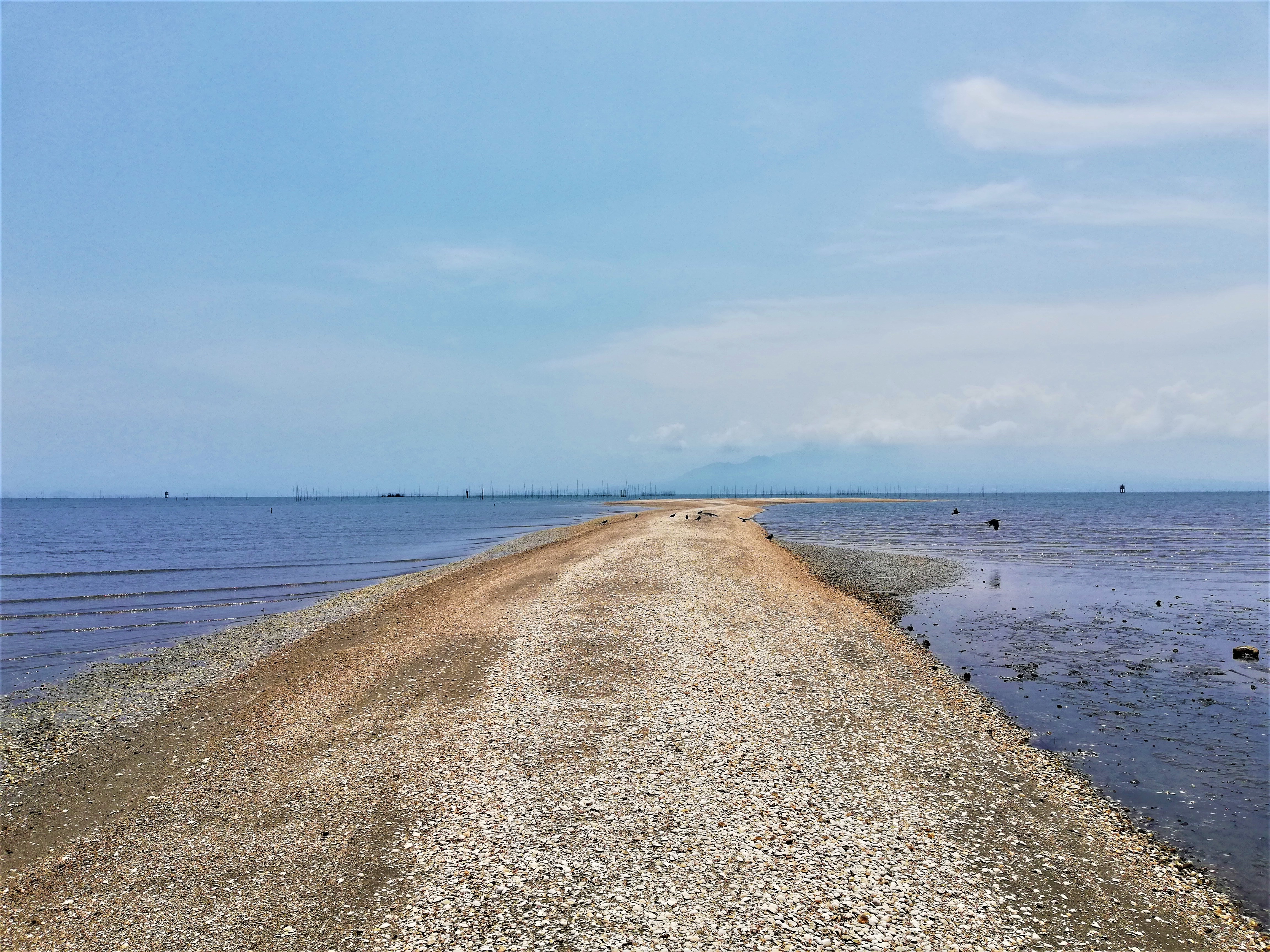 貝殻をじゃしじゃしと踏みながら歩いていくと