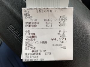 支出:4,171円(軽油)+880円(道の駅)=5,051円