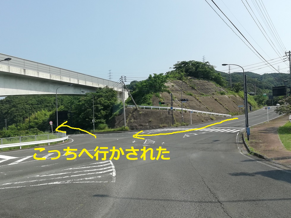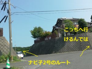 ナビ子は左へ行ってあの恐怖の道を通れと指示しますが、ナビ子を無視して右に行きます。