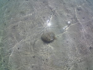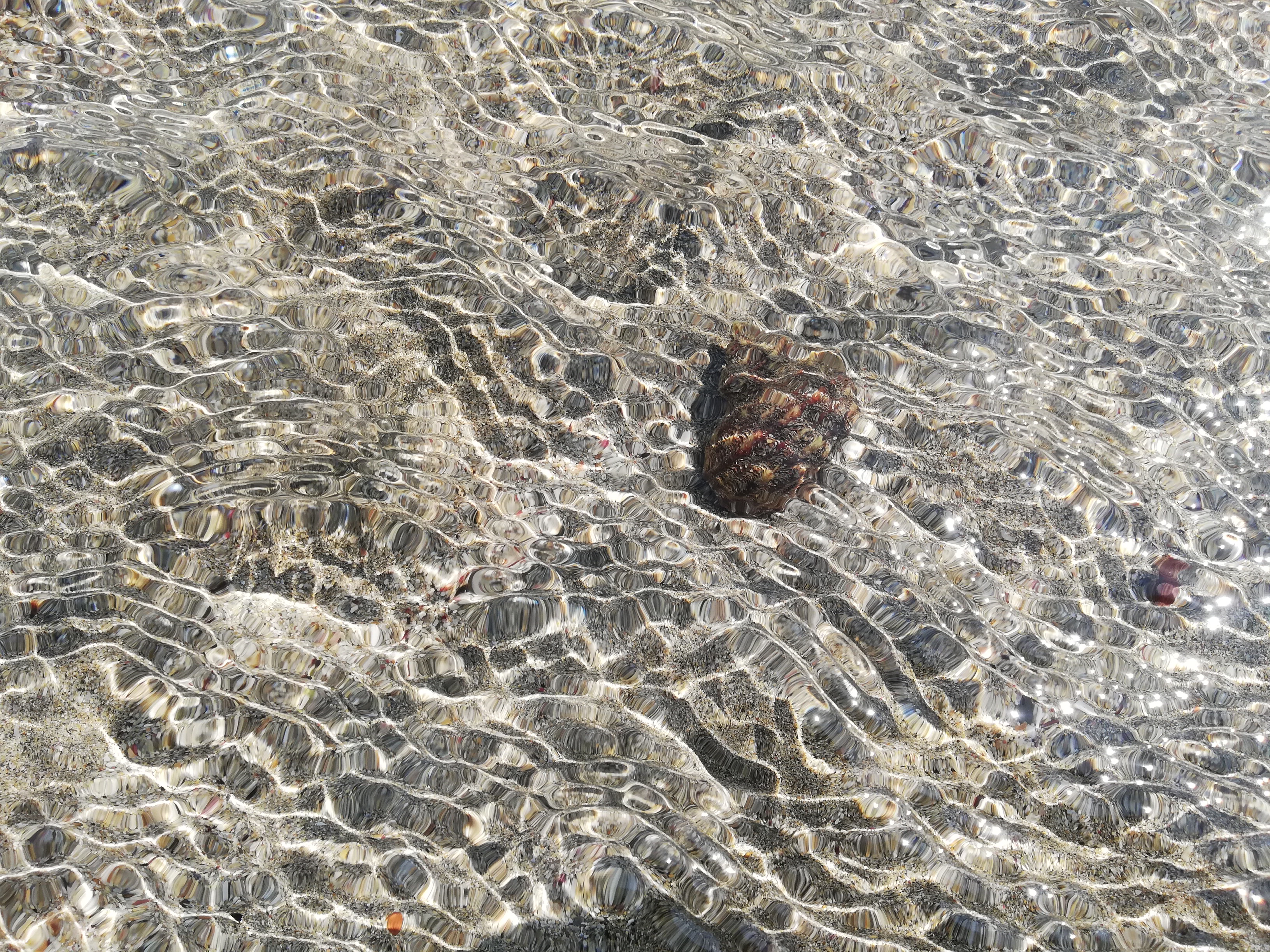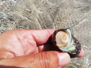 でも、砂の上にサザエがいるわけないし、たぶん貝殻でしょう。