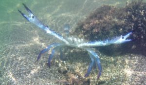 すると突然巨大なカニが水中で砂煙を上げながら僕を目指してやってきます。