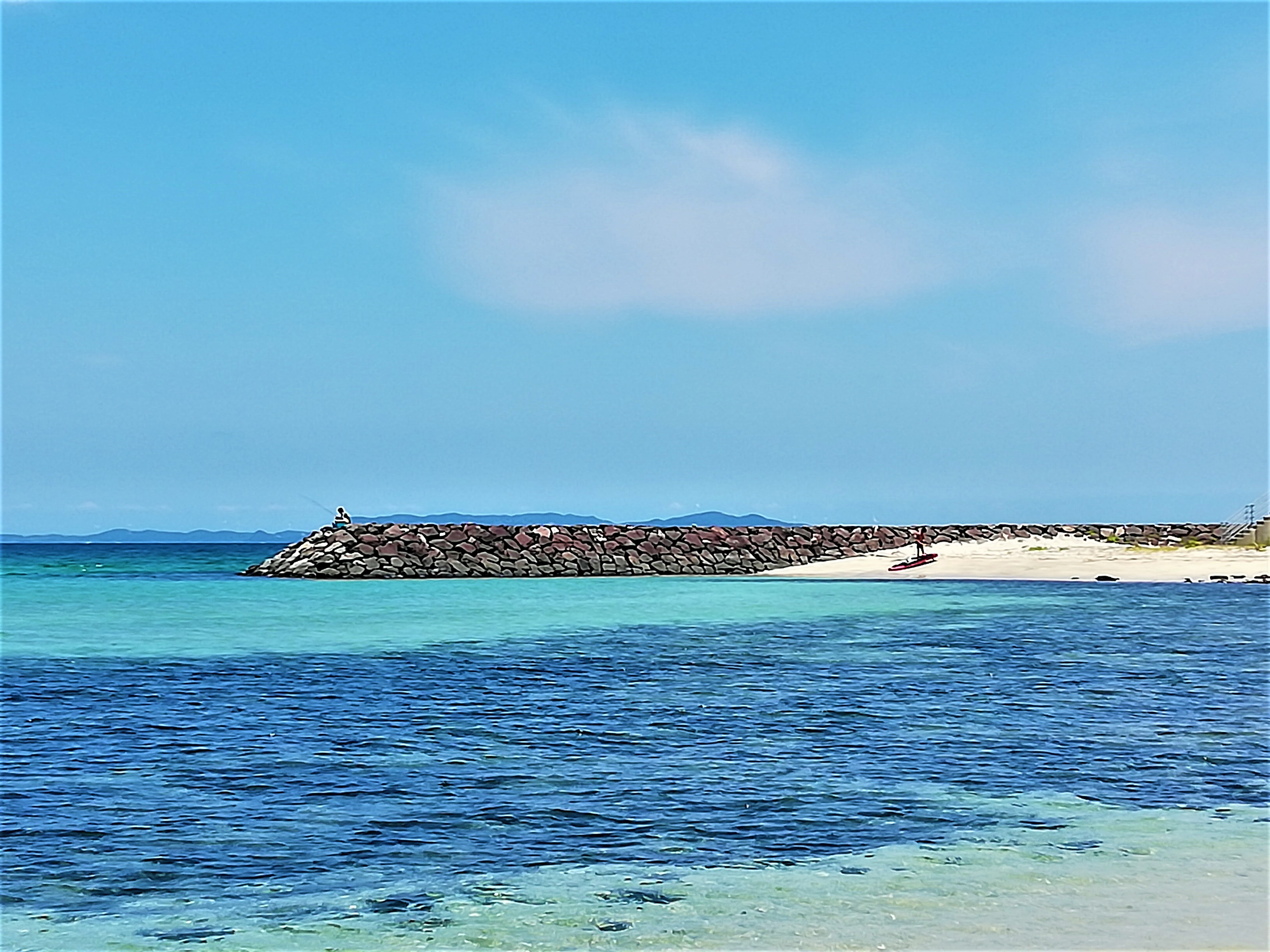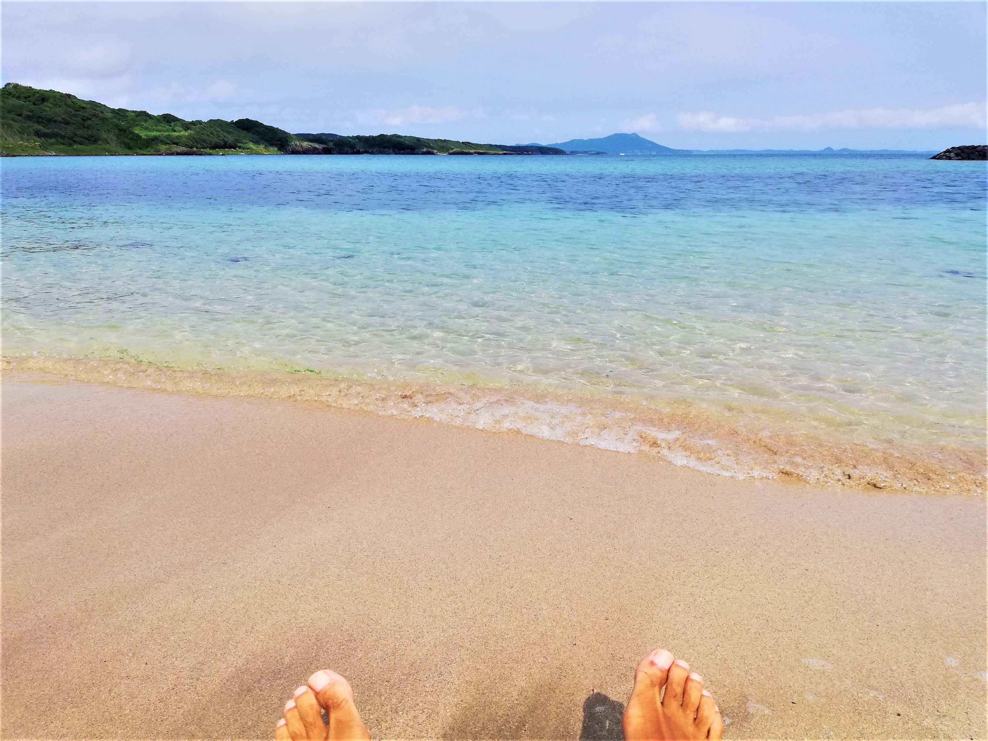 九州のビーチも意外と白い砂浜は少なくて、たまにあっても人工ビーチなのですが、ここはまさに自然の白砂ビーチなのです。