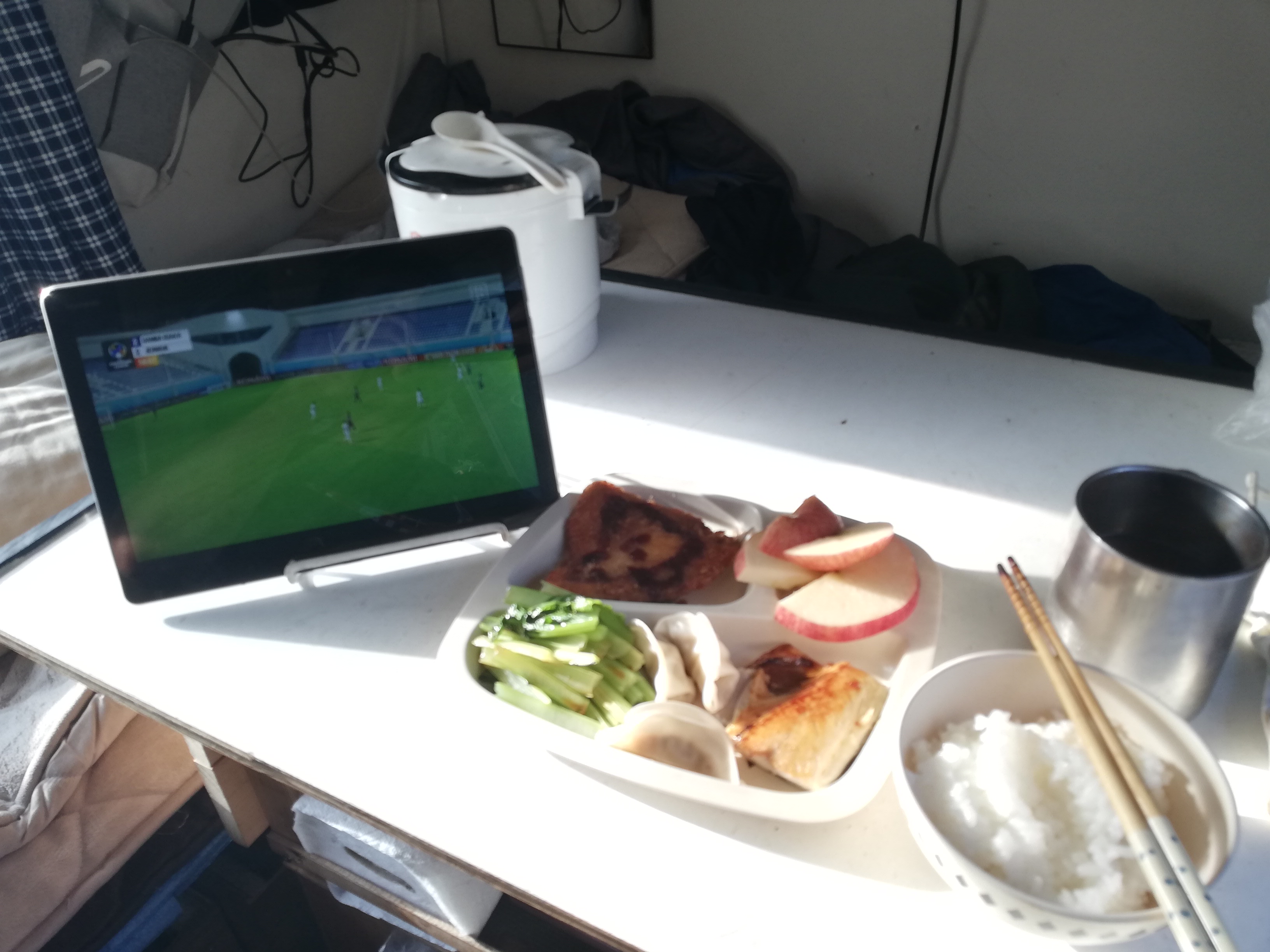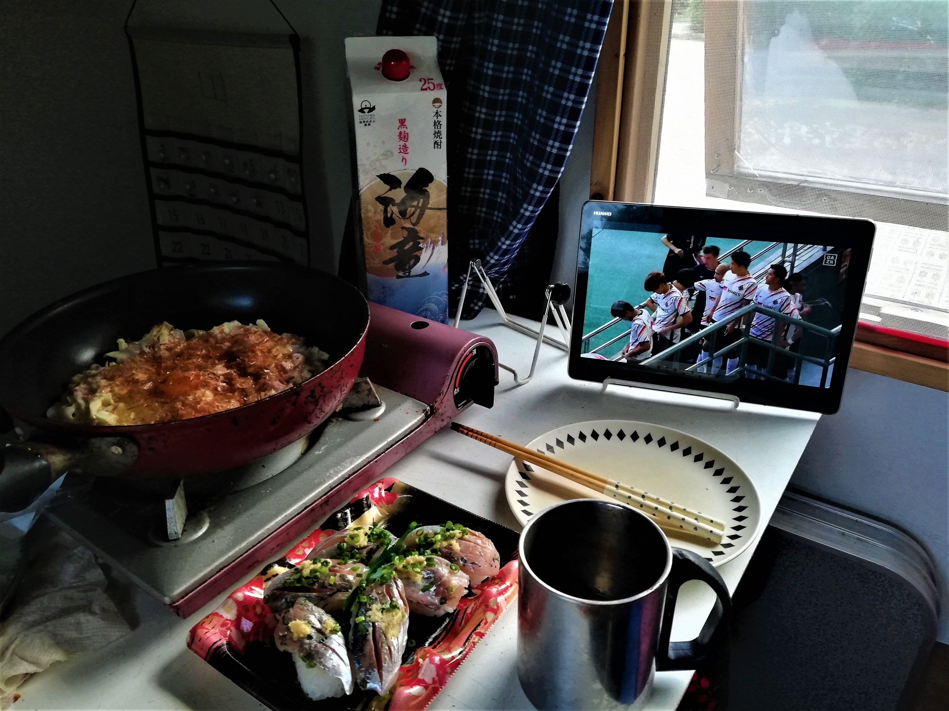 サッカーを観ながらの夕食です。