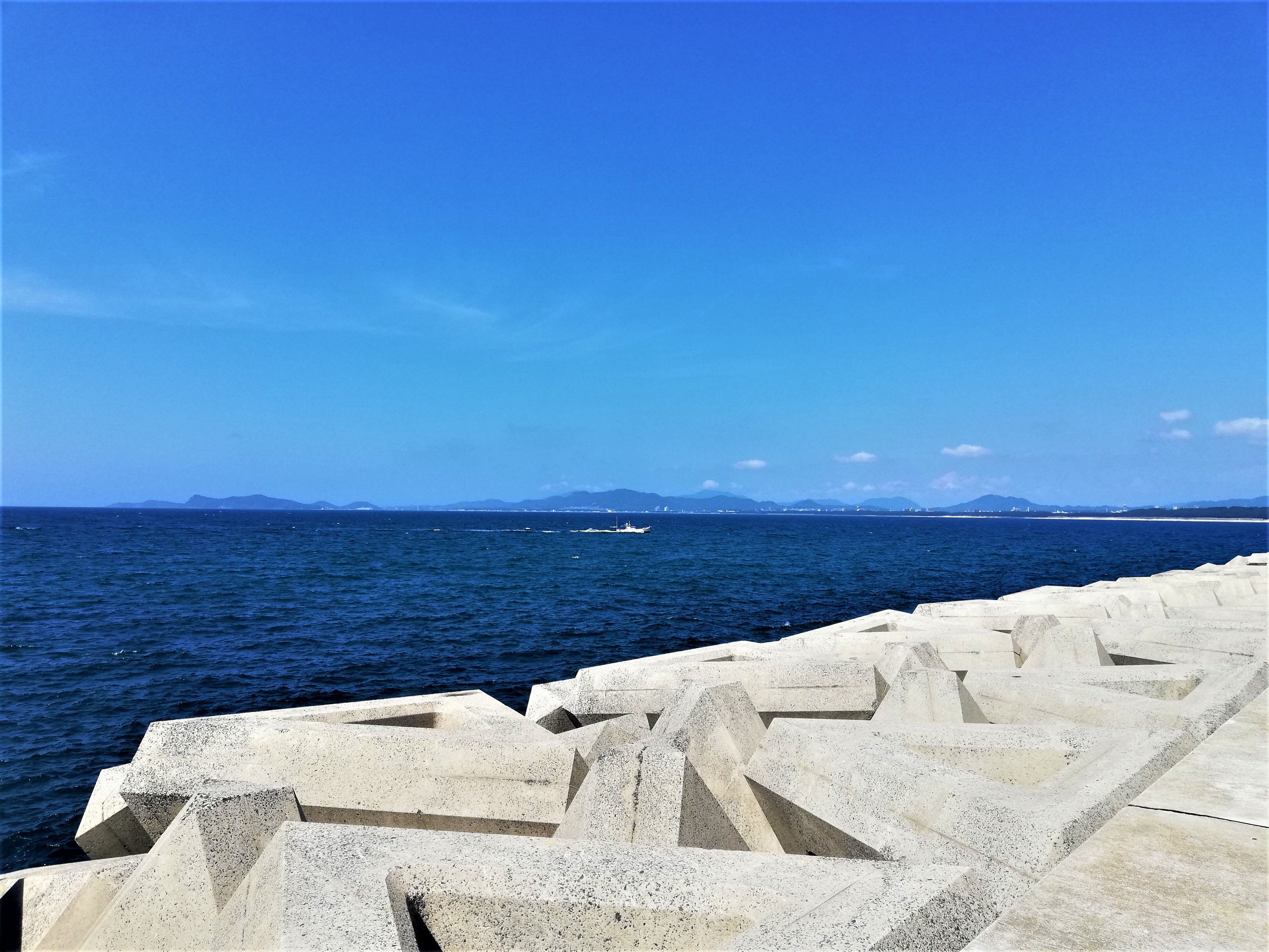 海の色が濃いです。