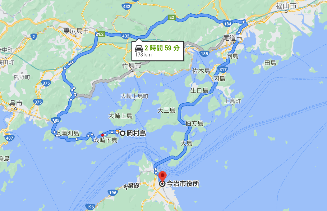 (注)フェリーでは大三島ー岡村島が走っている。
