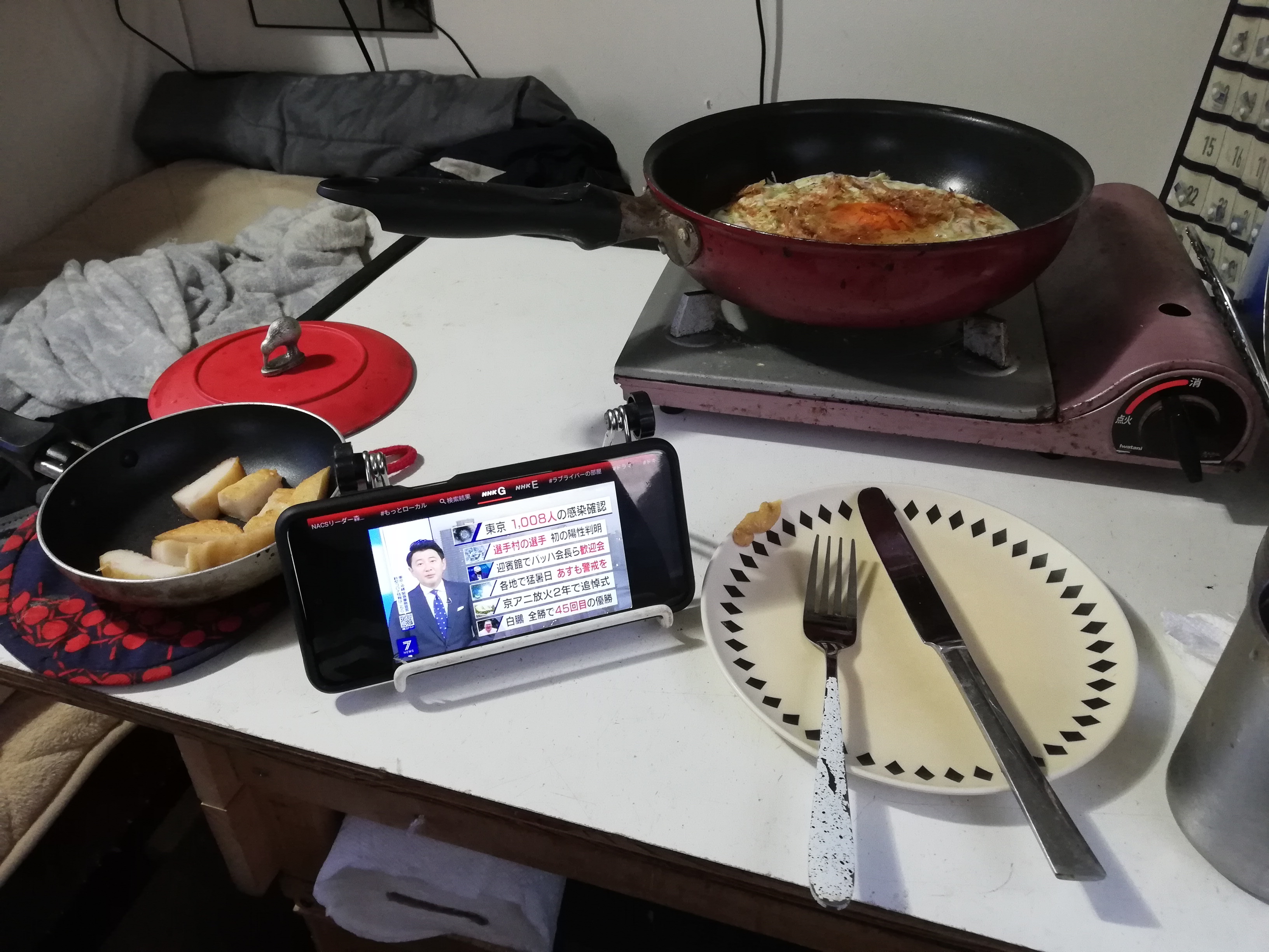 お好み焼き粉さえ配備しておけば、キャベツと豚肉とタマゴがあれば一食分できてしまうのです。